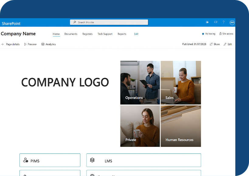 Improve your operations with a custom SharePoint solution designed to fit your organisation’s unique needs. From document management and access control to team collaboration and custom workflows and integrations, we’ll help you create a secure, user-friendly platform that grows with your business.